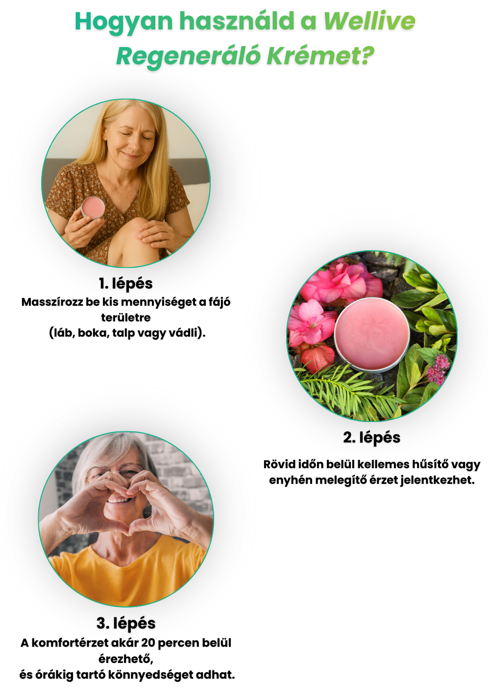 A Wellive krém természetes eredetű gyógynövény- és olajkivonatokat tartalmaz, mint például angyalgyökér, fekete nadálytő, borsmentaolaj és méhviasz, amelyek együttesen hozzájárulnak a bőr komfortérzetének támogatásához.